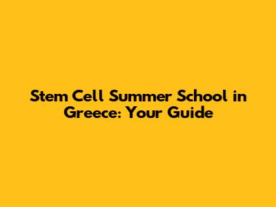 Stem Cell Summer School In Greece: Your Guide