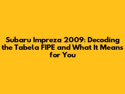 Hey guys! Thinking about diving into the world of the Subaru Impreza 2009? Or maybe you're just curious about its current market value? Well, you've come to the right place. Let's break down the Tabela FIPE and what it tells us about this iconic car.