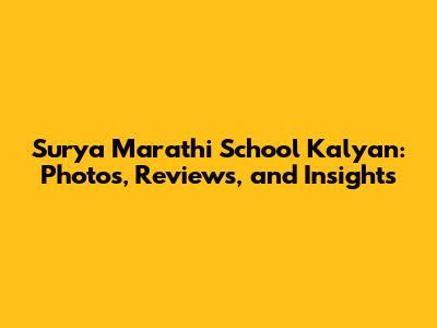 Surya Marathi School Kalyan: Photos, Reviews, And Insights