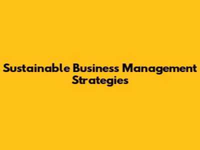 Sustainable Business Management Strategies