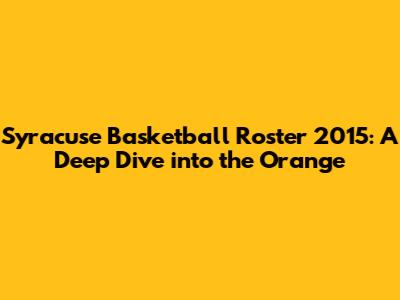 Hey basketball fanatics! Let's rewind the clock and dive into the Syracuse Orange basketball roster from the 2015 season. This was a fascinating time for the program, filled with both triumphs and tribulations. We're going to break down the key players, their roles, and what made this team tick. Get ready for a trip down memory lane, as we explore the heart and soul of the 2015 Syracuse basketball squad.