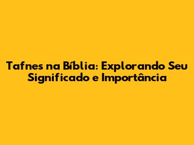 Tafnes Na Bíblia: Desvendando Seu Significado E Importância