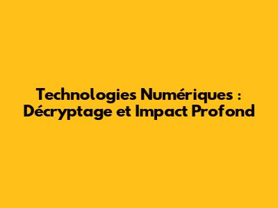 Technologies Numériques : Décryptage Et Impact Profond