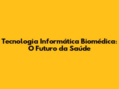 O Que é Tecnologia Informática Biomédica?