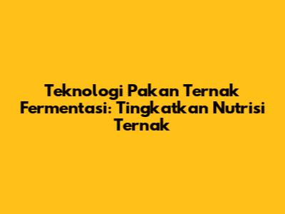 Teknologi Pakan Ternak Fermentasi: Tingkatkan Nutrisi Ternak
