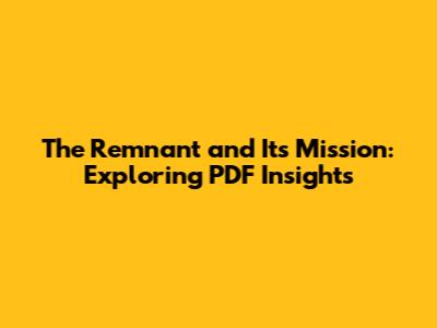 The Remnant And Its Mission: Exploring PDF Insights