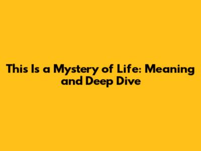 This Is A Mystery Of Life: Meaning And Deep Dive