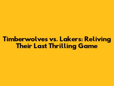 Timberwolves Vs. Lakers: Reliving Their Last Thrilling Game
