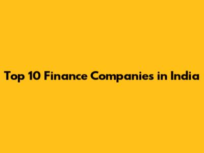 Top 10 Finance Companies In India
