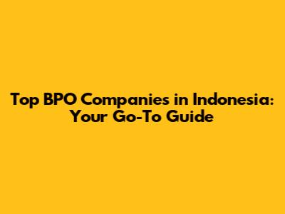 Top BPO Companies In Indonesia: Your Go-To Guide