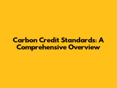 What are Carbon Credit Standards?