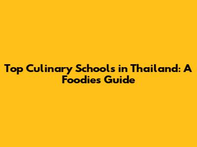 Top Culinary Schools In Thailand: A Foodie's Guide