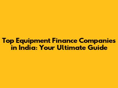 Top Equipment Finance Companies In India