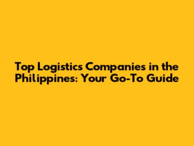Top Logistics Companies In The Philippines: Your Go-To Guide