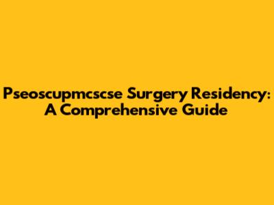 Top Surgery Residencies: Pseoscupmcscse Guide