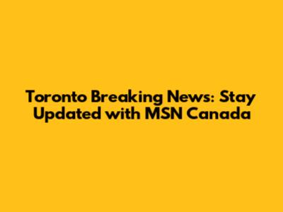 Toronto Breaking News: Stay Updated With MSN Canada