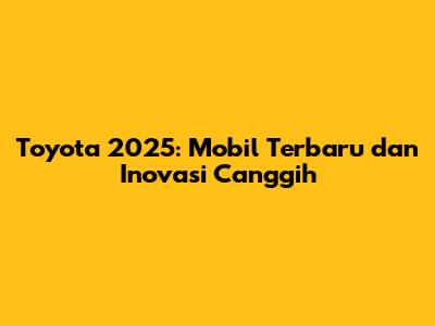 Toyota 2025: Mobil Terbaru Dan Inovasi Canggih