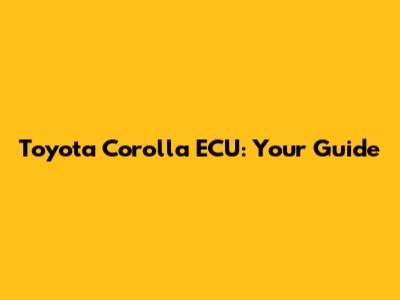 Toyota Corolla ECU: Your Guide