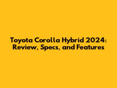 Toyota Corolla Hybrid 2024: Review, Specs, And Features
