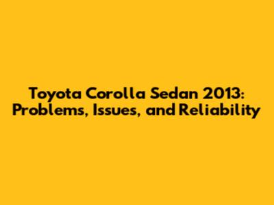 Toyota Corolla Sedan 2013: Problems, Issues, And Reliability
