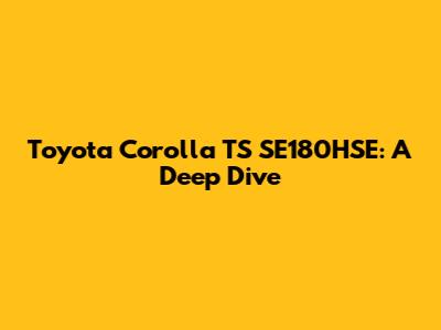 Toyota Corolla TS SE180HSE: A Deep Dive
