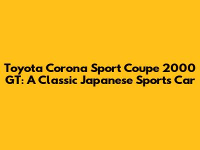 Toyota Corona Sport Coupe 2000 GT: A Classic Japanese Sports Car