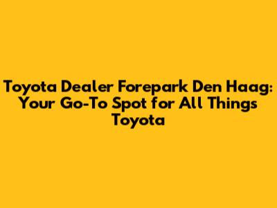 Toyota Dealer Forepark Den Haag: Find Your Next Car
