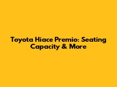 Toyota Hiace Premio: Seating Capacity & More