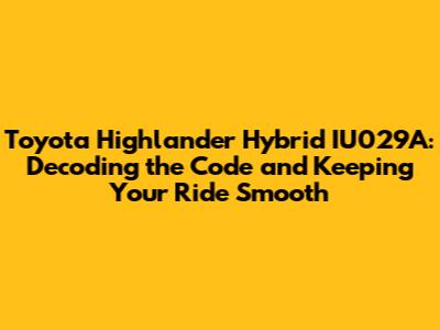 Toyota Highlander Hybrid IU029A: A Comprehensive Guide