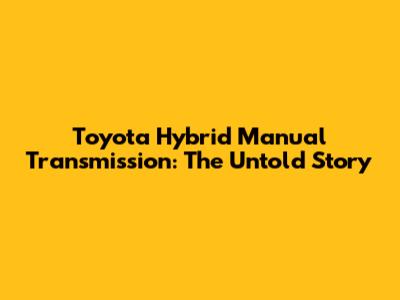 Toyota Hybrid Manual Transmission: The Untold Story