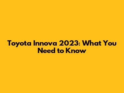 Toyota Innova 2023: What You Need To Know