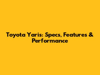 Toyota Yaris: Specs, Features & Performance