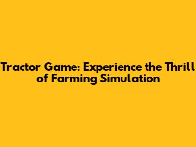 Tractor Game: Experience The Thrill Of Farming Simulation