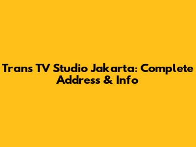 Trans TV Studio Jakarta: Complete Address & Info
