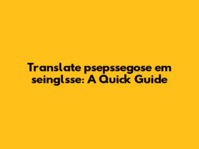 Translate psepssegose Em Seinglsse: A Quick Guide