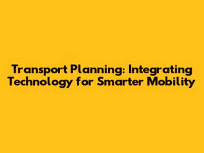 Transport Planning: Integrating Technology For Smarter Mobility
