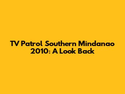 Hey guys! Ever find yourself reminiscing about the good old days? Let's take a trip down memory lane and revisit TV Patrol Southern Mindanao from way back in 2010. This wasn't just your average news program; it was the source for everything happening in the region. We're talking about Davao City, General Santos, and all the provinces in between! Think of it as a time capsule, giving us a glimpse into the issues, events, and faces that shaped Southern Mindanao during that year. So, buckle up as we dive into what made TV Patrol Southern Mindanao such a vital part of the community in 2010.