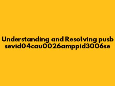 Understanding And Resolving Pusb Sevid04cau0026amppid3006se