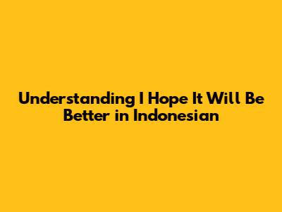 Understanding 'I Hope It Will Be Better' In Indonesian