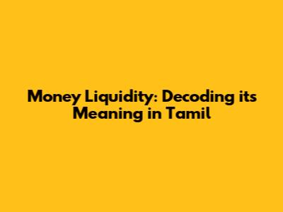 Understanding Money Liquidity: A Tamil Guide