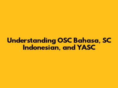 Understanding OSC Bahasa, SC Indonesian, And YASC