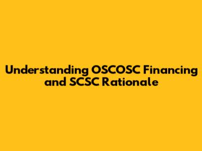 Understanding OSCOSC Financing And SCSC Rationale