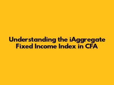 Hey guys! Let's dive into understanding the iAggregate Fixed Income Index within the context of the CFA (Chartered Financial Analyst) curriculum. This index is super important for anyone looking to get a solid grasp on fixed income markets. We're going to break down what it is, why it matters, and how it's used in the world of finance. So, buckle up, and let's get started!