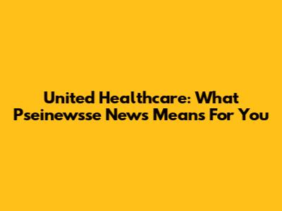 United Healthcare: What Pseinewsse News Means For You