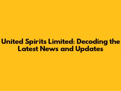United Spirits Limited: Latest News & Updates