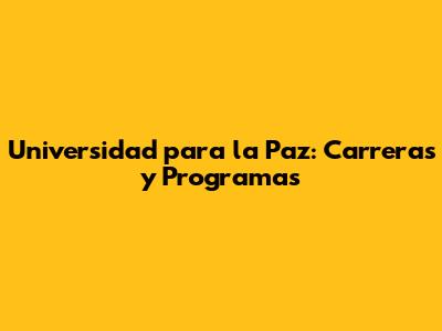 Universidad Para La Paz: Carreras Y Programas