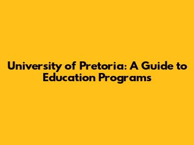 University Of Pretoria: A Guide To Education Programs