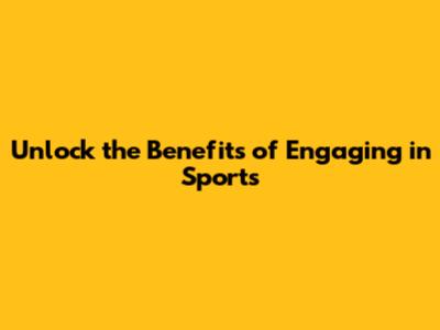 Unlock The Benefits Of Engaging In Sports