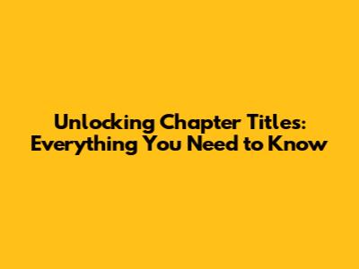 Unlocking Chapter Titles: Everything You Need To Know
