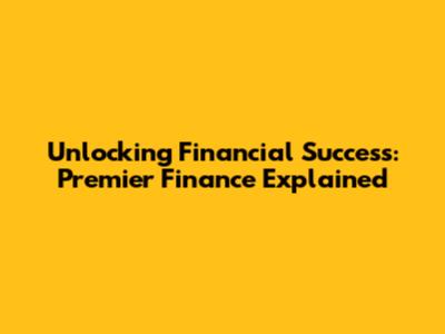 Unlocking Financial Success: Premier Finance Explained